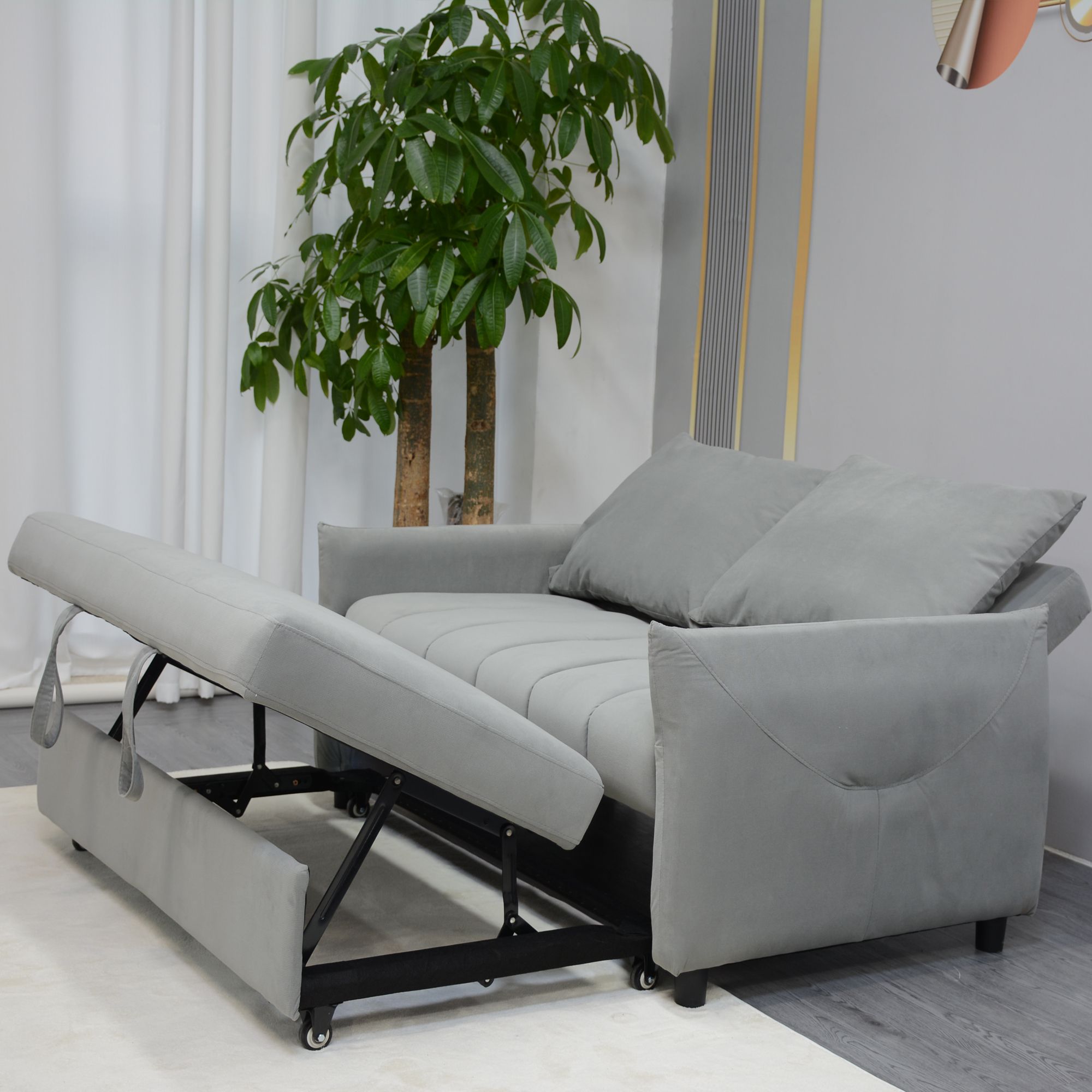 4.High-quality pull-out sofa bed: The surface of this sofa is made of high-quality and durable Chenille fabric, providing elegance, comfort and anti-wrinkle properties. The cushion is filled with high-density sponge, providing extremely high comfort.
